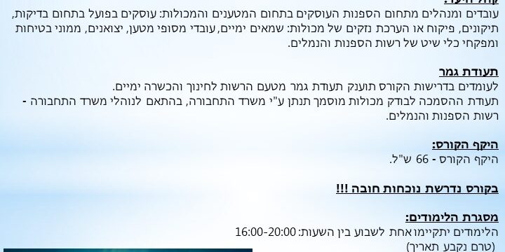 נפתחה ברשות ההרשמה לקורס בודק מכולות מוסמך.