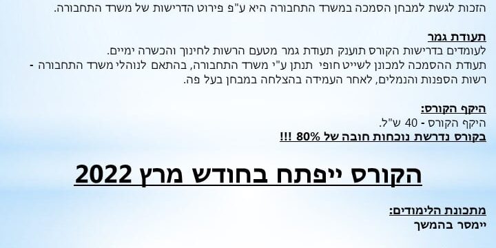 פבר172022כללי Post navigationPreviousPrevious post:קורס אימון בסיסי למחזיקי פנקס ימאי שאינם קצינים 13-17.3.22NextNext post:סיום קורס נתבים, חובלים ורב חובלי גוררת בסימולטורפוסטים קשוריםקורס מנהלי מרינות ומעגנות- הראשון בישראל!אוקטובר 26, 2025קורס STCW משולב קצינים + דירוגים + משיטיםאוקטובר 23, 2025קורס משיט 7 ייפתח ב- 2.11.25ספטמבר 16, 2025פתיחת קורסי קצונה ימית 4.1.2026אוגוסט 27, 2025