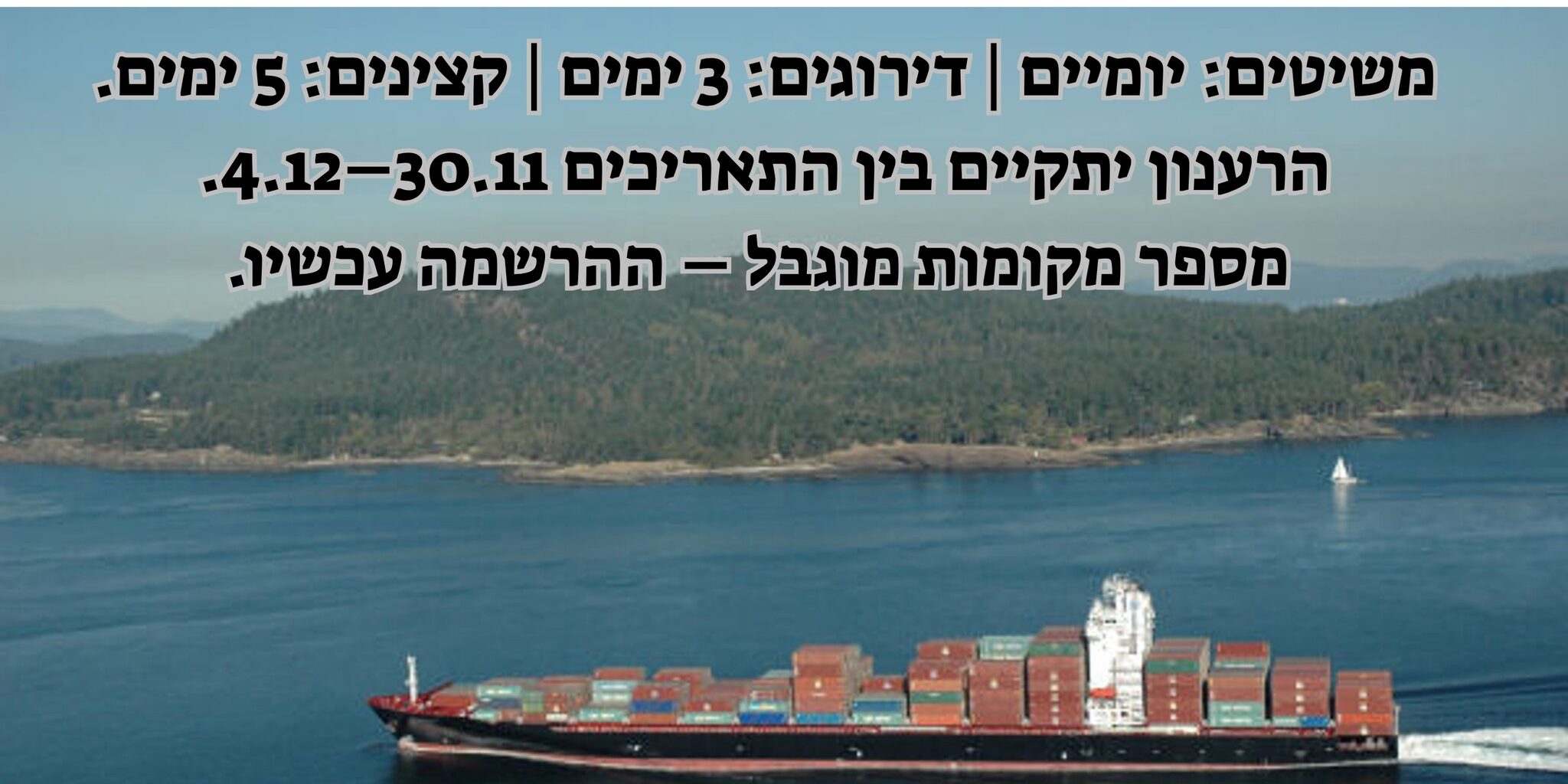 נפתחה ההרשמה לקורס רענון STCW משולב — משיטים יומיים | דירוגים 3 ימים | קצינים 5 ימים. התאריכים: 30.11–4.12. מספר מקומות מוגבל. לפרטים והרשמה: 04-9911016