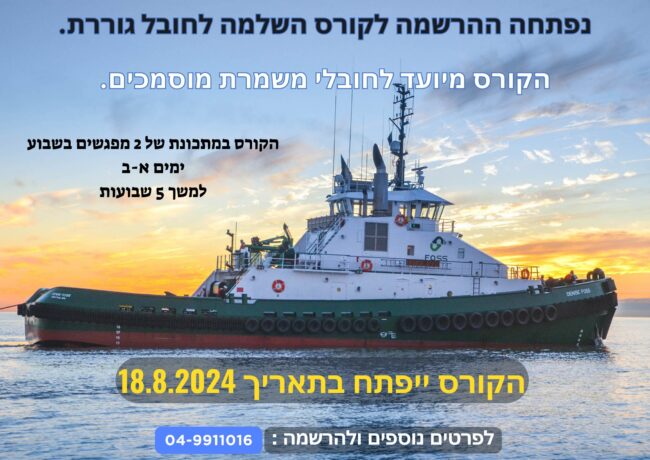 קורס התמחות בגוררות לחובלי משמרת מוסמכים כלליBy galia1976יולי 3, 2024Leave a commentלפרטים נוספחם אנא צרו קשר בטלפון: 04-9911016